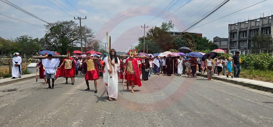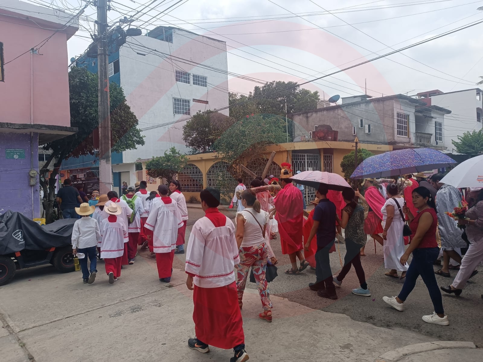 Huejutla, Hgo.- Decenas de fieles católicos participaron la mañana del pasado Viernes Santo en el tradicional Viacrucis que organizó la parroquia Sagrado Corazón de Jesús, de la colonia Parque de Poblamiento y sus diferentes sectores.