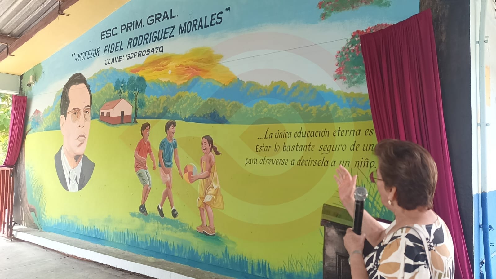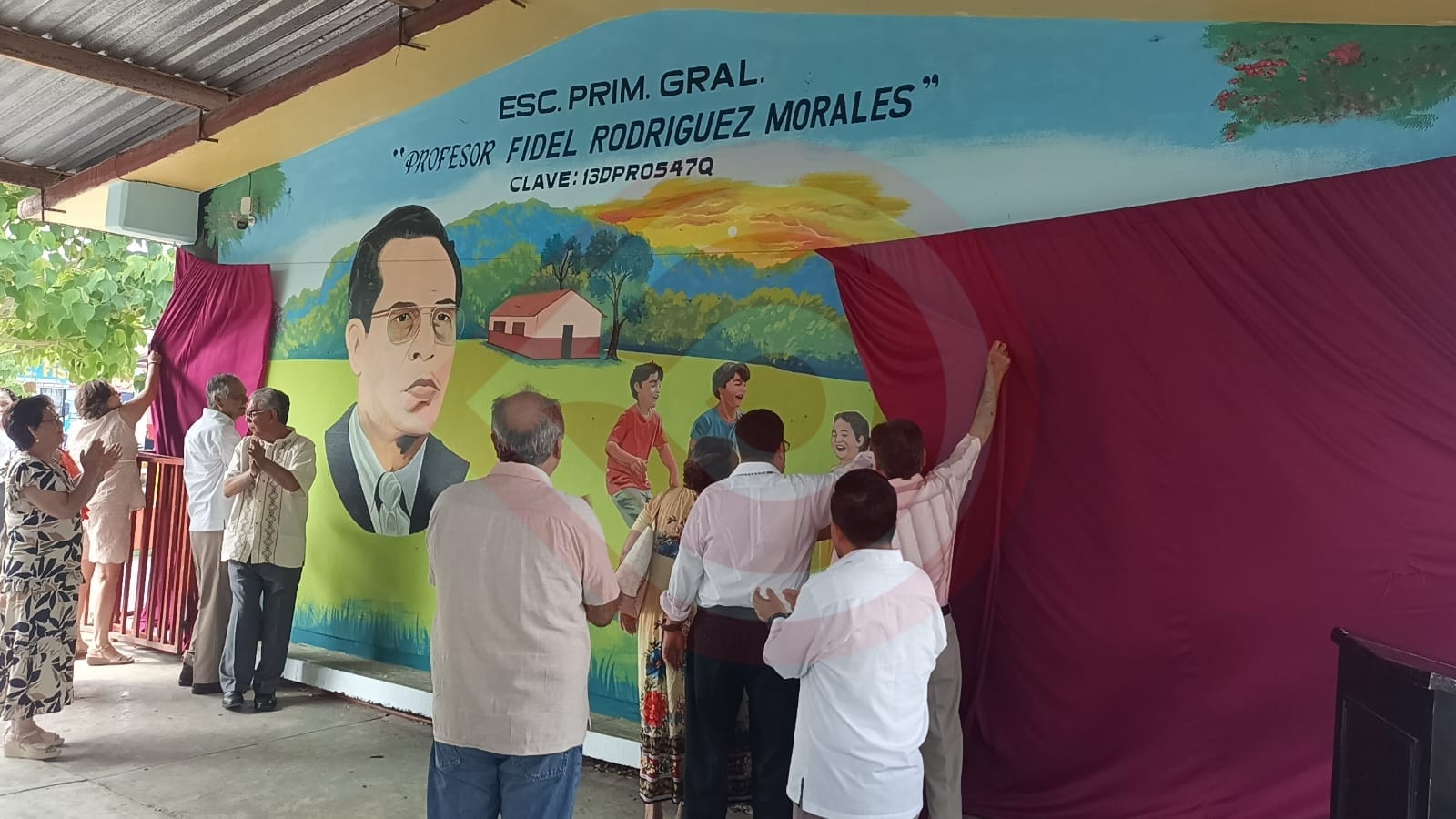Los familiares del profesor Fidel Rodríguez Morales, agradecieron puntualmente por este mural que durante la mañana de este lunes fue develado en la escuela primaria Fidel Rodríguez Morales.