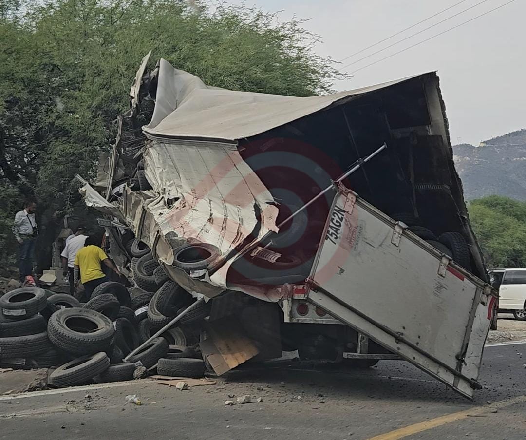 Mas adelante sobre la misma vía federal a la altura de venados en la autopista cuatro carriles se volteo un camión Torton que llevaba frutas y verduras, presuntamente ante el exceso de velocidad su conductor perdió el control del pesado vehículo y quedó recostado sobre su lado derecho.
