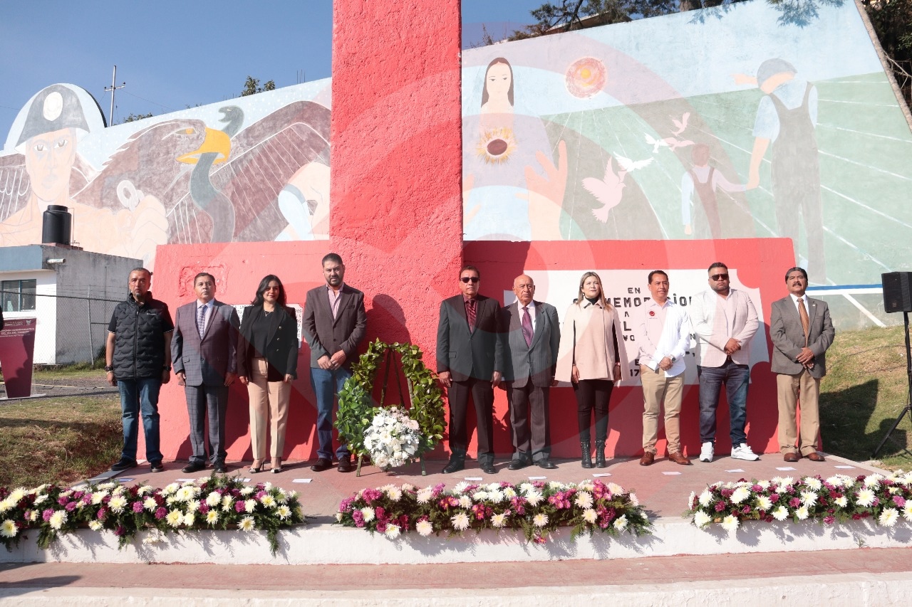 Mineral de la Reforma, Hgo.- En representación del gobernador Julio Menchaca Salazar, el secretario del Trabajo, Oscar Javier González Hernández encabezó la guardia de honor al pie del monumento de la Primera Huelga en América. En el marco de la Conmemoración del Día del Trabajo, el servidor público estuvo acompañado del alcalde de Mineral del Monte, Edmundo Méndez Tejeda, y líderes sindicales de la entidad.