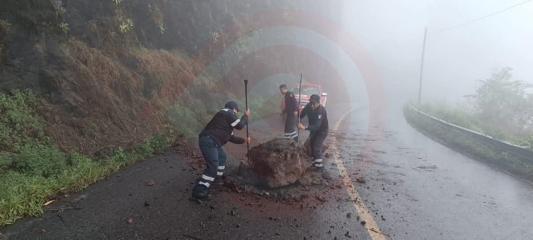 Ante el riesgo eminente y el bloqueo de uno de los carriles, elementos de Protección Civil hicieron acto de presencia para retirar las rocas y prevenir accidentes.