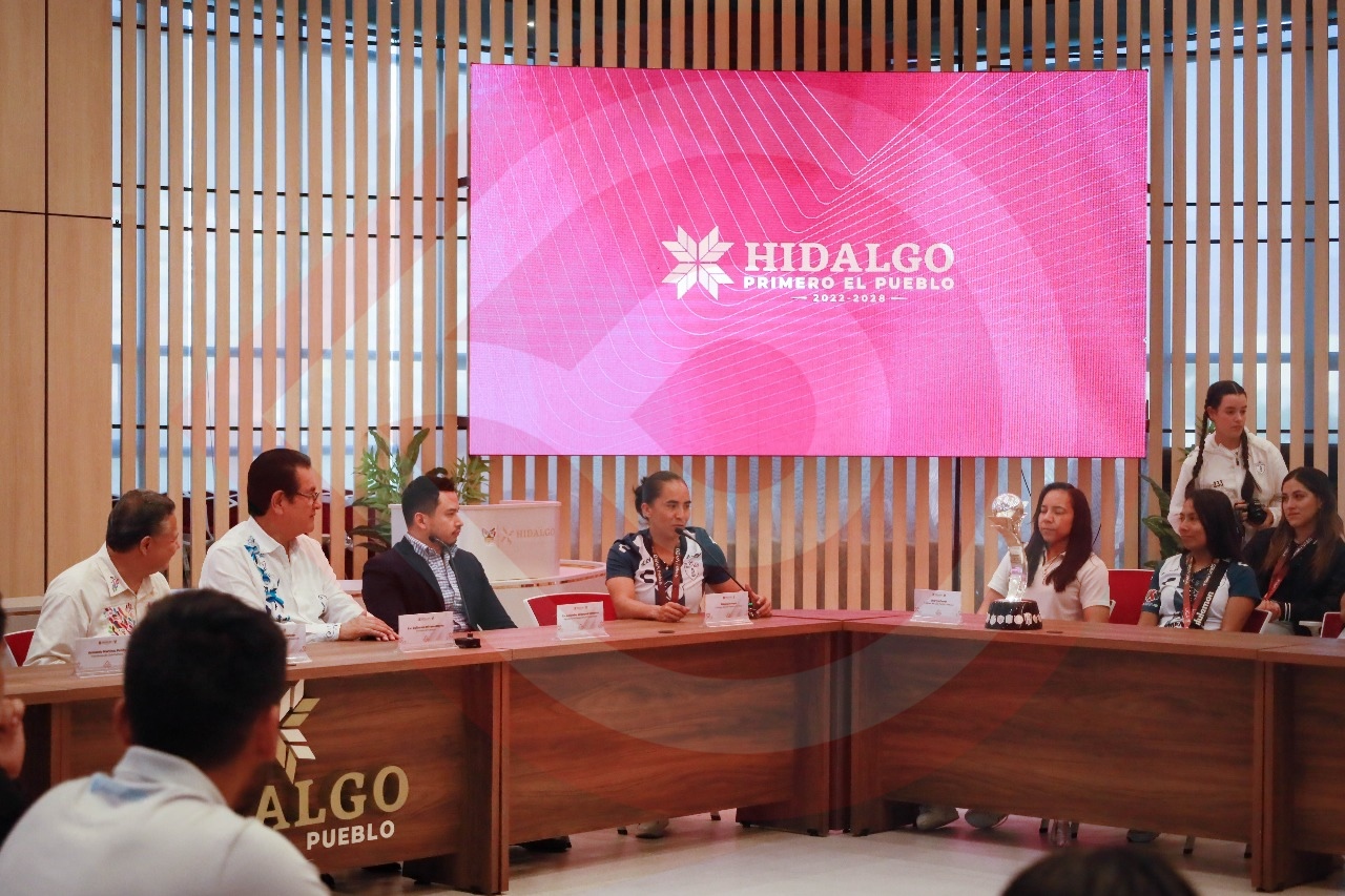 Pachuca de Soto, Hgo.- El gobernador de Hidalgo, Julio Menchaca, recibió en el Edificio de Gobierno al equipo femenil del Club de Fútbol Pachuca, quienes se coronaron como las campeonas indiscutibles de la Liga MX Femenil.