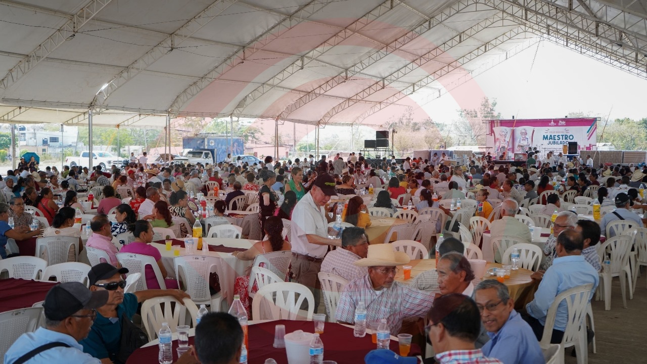 Huejutla, Hgo.– En un ambiente cálido y fraterno, el alcalde José Alfredo San Román Duval honró el legado y la trayectoria de más de mil docentes jubilados, quienes atendieron la convocatoria del Gobierno Municipal que Transforma y se congregaron en los terrenos de la feria, para celebrar su día con música, baile, deliciosa comida y grandes premios.