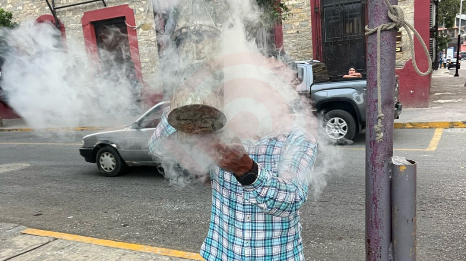 Elementos del Heroico Cuerpo de Bomberos en coordinación con personal de Protección Civil municipal (PC), que coordina Héctor Armando Gómez, retiraron el enjambre de abejas que estaba alojado en la parte alta de un árbol, de la zona centro de esta ciudad.