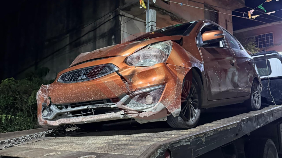 Posteriormente fueron perseguidos por los afectados, dándoles alcance en la calle Cuauhtémoc, de la colonia Barrio arriba, donde perdieron el control de su automóvil y se impactaron contra una barda y un poste; los tres hombres que viajaban en el auto, se dieron a la fuga con rumbo desconocido, dejando a la unidad y los afectados en el lugar.
