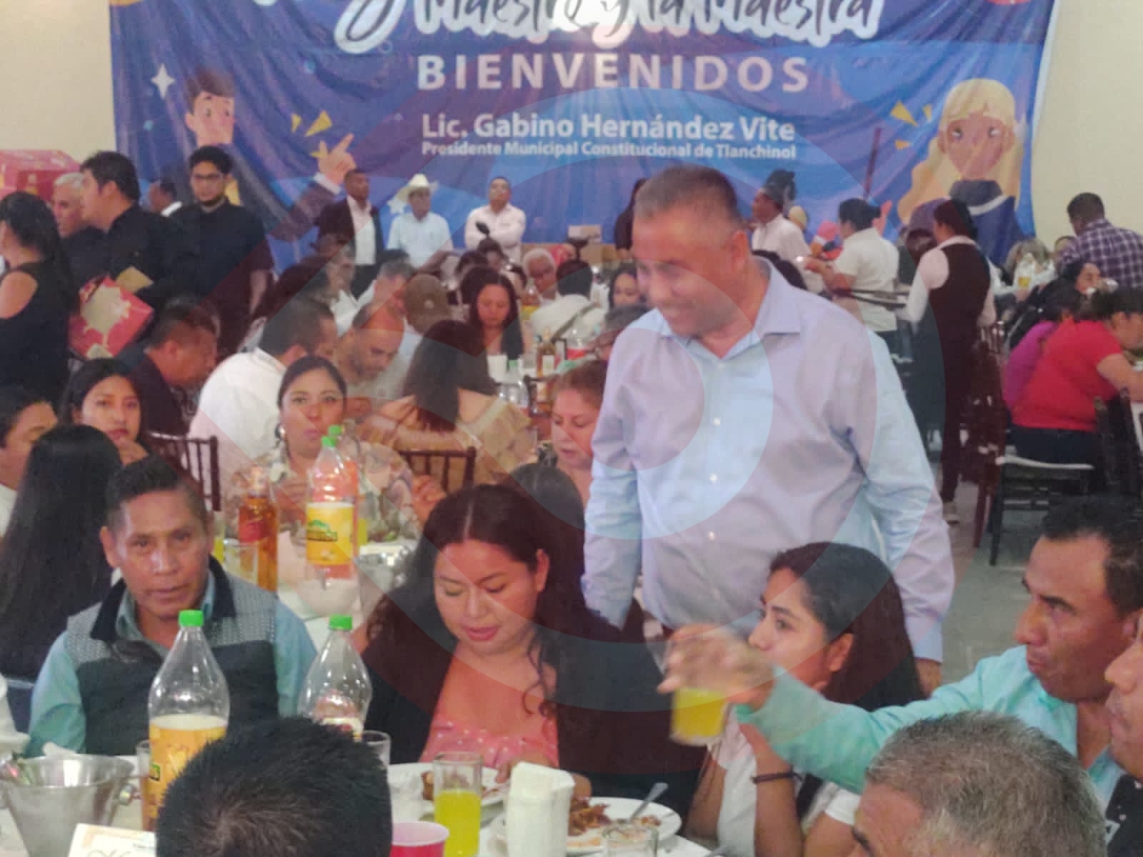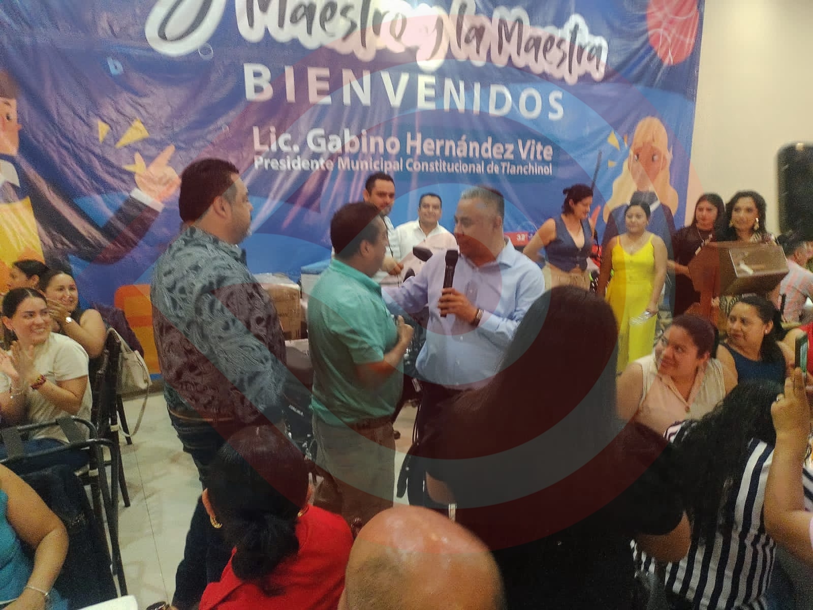 El festejo se llevó a cabo la tarde de este viernes, en el Barrio Unidad Deportiva, en donde el presidente, acompañado por el cabildo y funcionarios municipales, recibió a docentes desde nivel preescolar hasta superior y mediante un mensaje reconoció la labor realizada en las aulas y su importancia en la formación de niños y jóvenes.