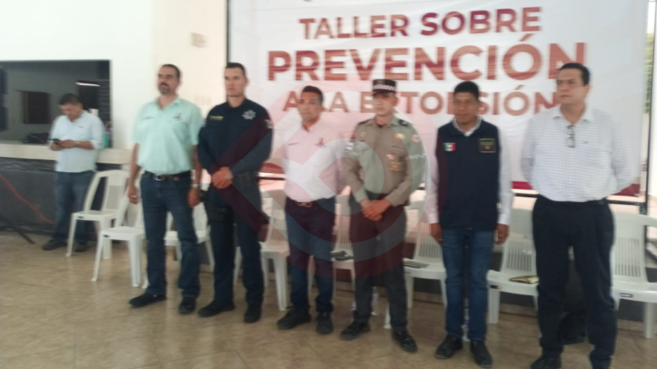 Durante el taller sobre Prevención a la extorsión se tuvo la participación del director de Seguridad Pública Municipal, del responsable de la Guardia Nacional, de la jefa Regional de Seguridad Pública Estatal, el jefe de Gobernación de la CNI, la Secretaría de Gobernación del Gobierno Federal, quienes se enfocaron y abordaron los temas, así como ejemplos relacionados con la extorsión.