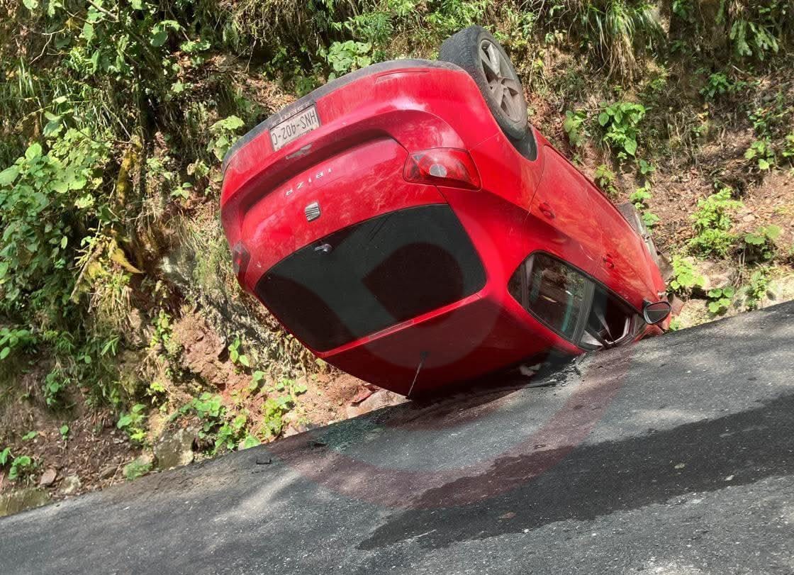 El accidente ocurrió la tarde de este miércoles, cuando en ese tramo, la persona que manejaba el automóvil de color rojo, perdió el control al llegar a una curva y se salió del camino, quedando volcado sobre la cuneta con las llantas para arriba.