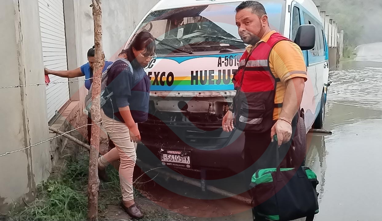Huejutla, Hgo.- Una camioneta particular chocó por alcance a una combi pasajera de la ruta Huejutla – Atlapexco, esta última terminó impactada en una cerca y una casa, esto sobre la vía federal México – Tampico, a la altura de la comunidad de Zocuiteco Benito Juárez.