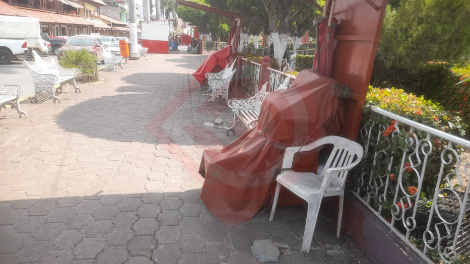 Por tal motivo, la mayoría de los puestos permanecían cubiertos con el uniforme plástico de color rojo y sólo unas pocas sombrillas de igual tono, extendidas a lo largo del costado de la Plaza 21 de Mayo, en el borde de la avenida Revolución, anunciaban el servicio.