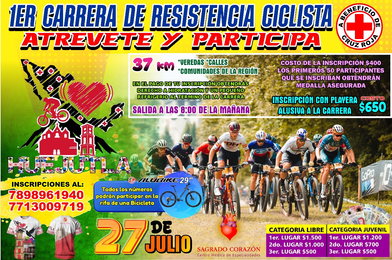 Más adelante, expone que, la inscripción con playera alusiva a la carrera tiene un costo de $650.00 pesos y todos los números tendrán el derecho de participar en la rifa de una Bicicleta.