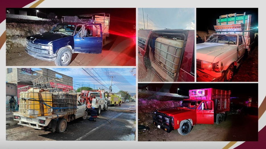 Pachuca de Soto, Hgo.- En acciones distintas, elementos de la Secretaría de Seguridad Pública de Hidalgo (SSPH) decomisaron vehículos, pipas y 380 mil 530 litros de hidrocarburo de procedencia ilícita durante la última semana.