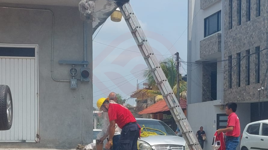 Indicó que, el enjambre estaba a por lo menos tres metros de altura por lo que inmediatamente se procedió a utilizar una escalera para poder realizar las maniobras y la captura correspondiente, además de usar el equipo de apicultura con un ahumador.