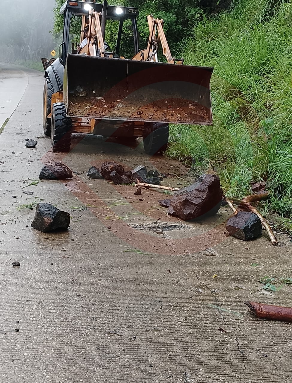 Posteriormente y, tras recibir un reporte ciudadano, el personal se trasladó al tramo correspondiente a la comunidad de Coatzonco, donde grandes rocas obstruían por completo la vialidad.