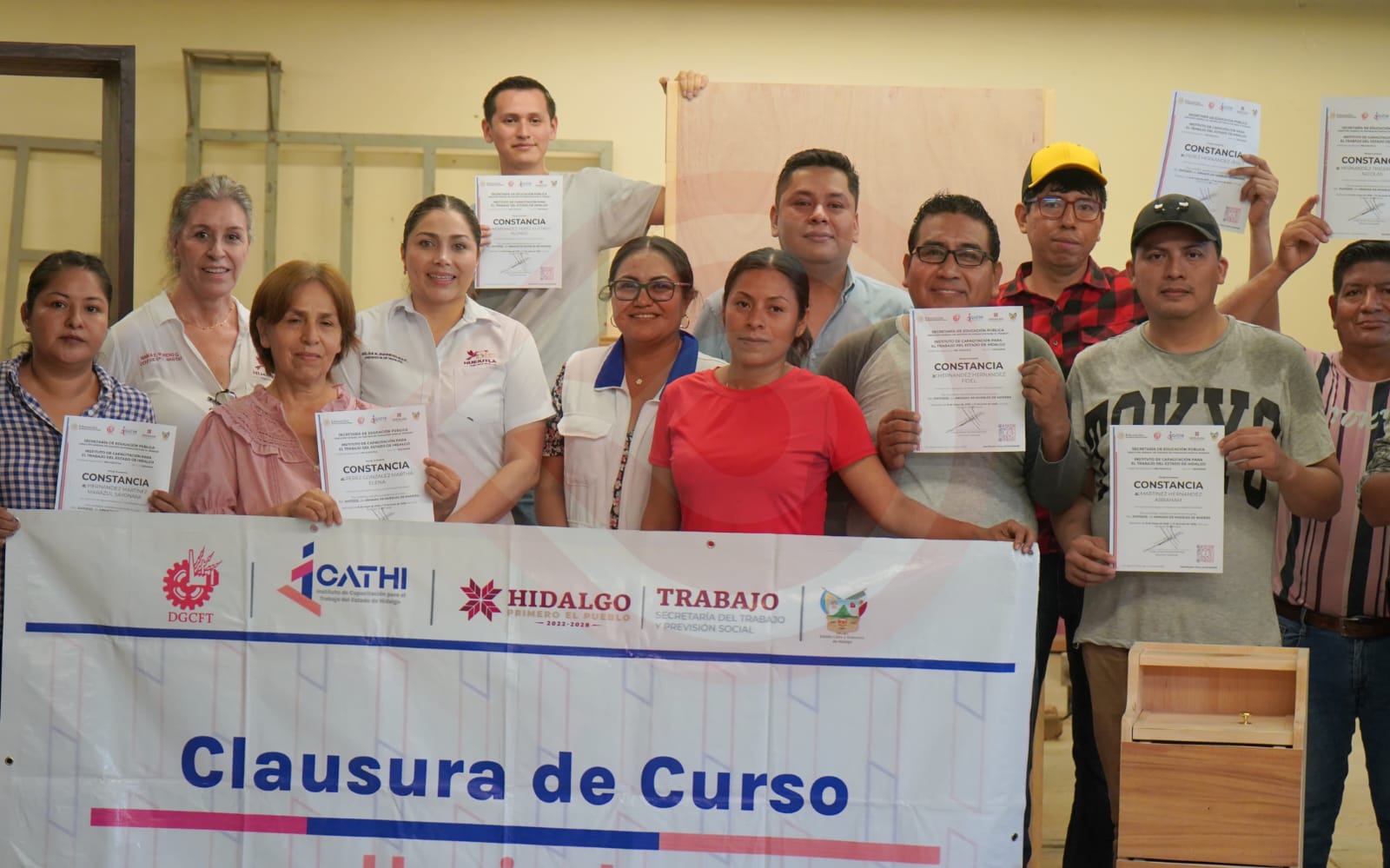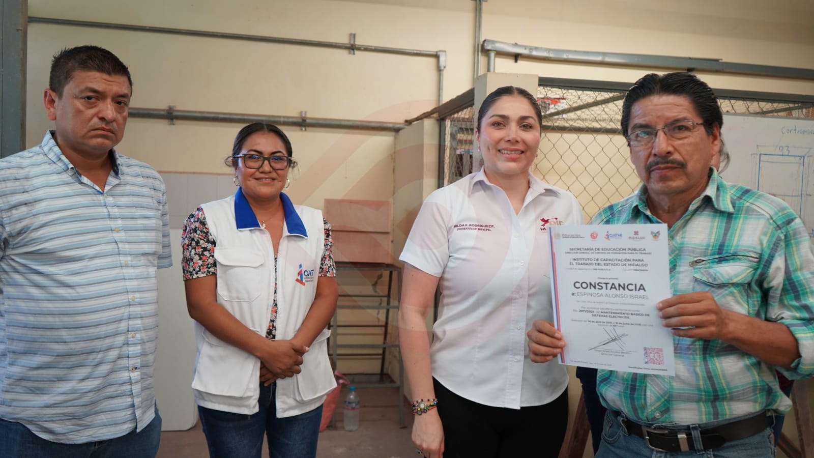 Huejutla de Reyes, Hgo.- En un esfuerzo por fomentar la generación de oportunidades y el desarrollo profesional de las y los huejutlenses, Kristel Rodríguez Flores, presidenta del Sistema DIF, encabezó la ceremonia de clausura de los talleres gratuitos de carpintería y electricidad, realizados en coordinación con el Gobierno Municipal que preside el Licenciado José Alfredo San Román, el Centro de Capacitación y Desarrollo Familiar – Hábitat DIF y el ICATHI Plantel Huejutla.
