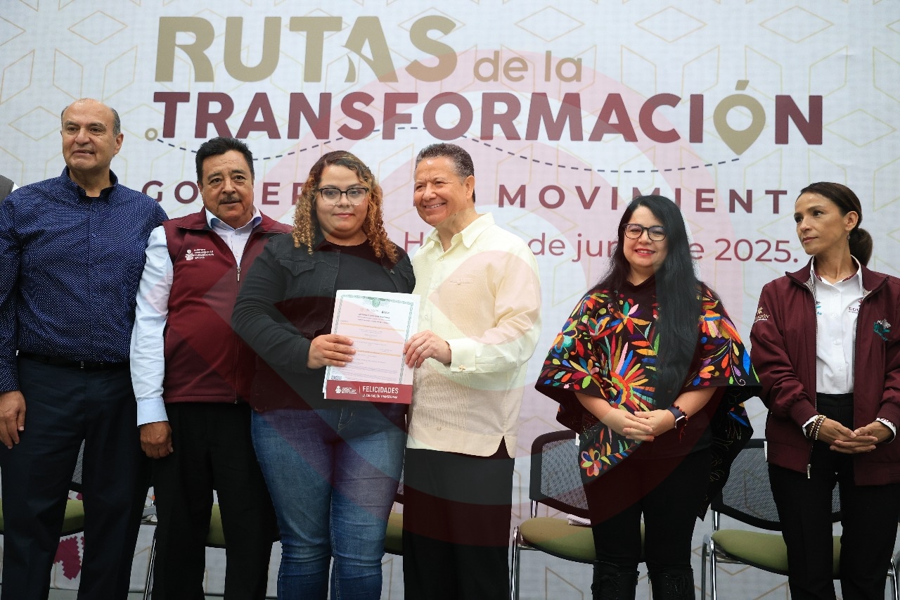 Como parte de su visita, Menchaca Salazar fue testigo de la entrega simbólica de certificados de nivel básico y de apoyos económicos de las Becas para la Transformación de Estudiantes de Instituciones de Educación Superior, que representan una inversión de 8 millones 382 mil pesos.
