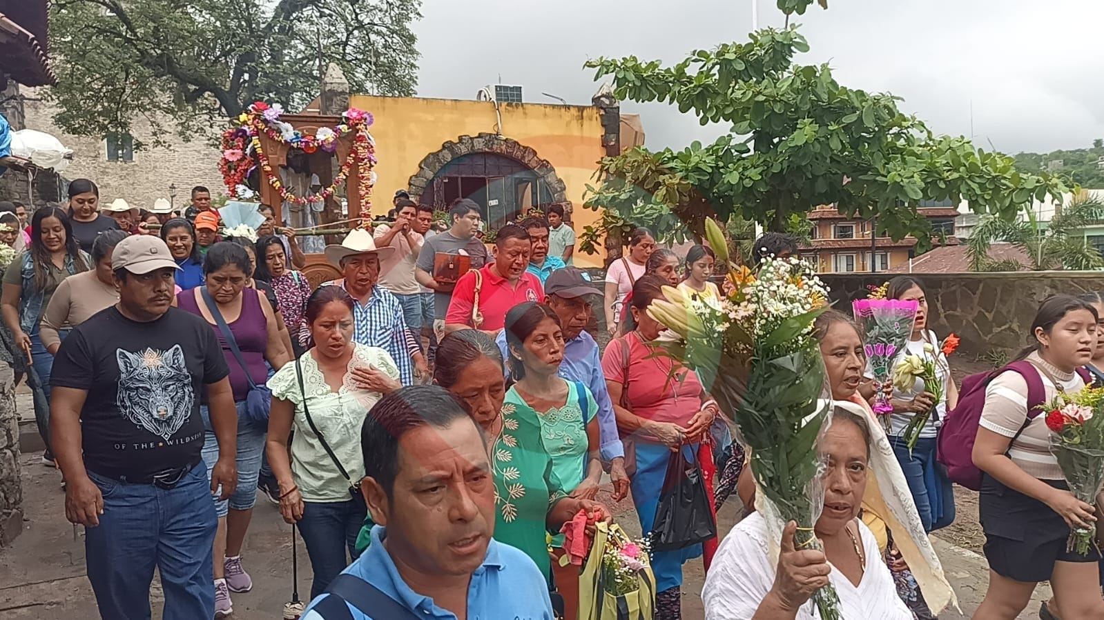 Huejutla, Hidalgo. – Fieles católicos del barrio Tepetate los Otates de Huejutla de Reyes se llevaron en una procesión al Padre Jesús a una velación con motivo de la fiesta patronal.