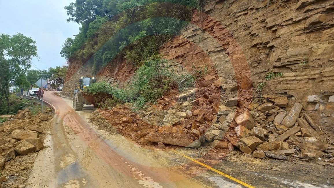 * Pacula: En el camino hacia la comunidad del Aguacatito, elementos continúan los trabajos en atención a un desgajamiento del cerro. Con apoyo de maquinaria y personal de Protección Civil, se están realizando las labores de limpieza para restablecer el acceso.