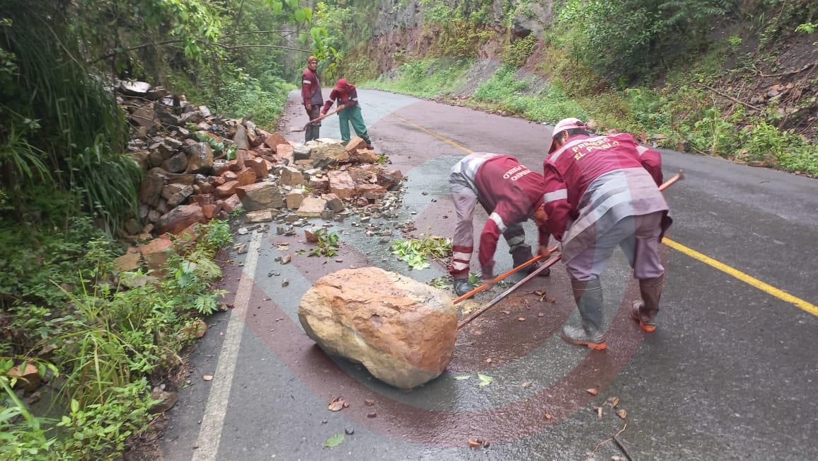 * Tlanchinol – Hueyapa: Se informa que el derrumbe ocurrido en el kilómetro 9+000 sobre la carretera estatal Tlanchinol – Hueyapa fue atendido, lográndose dar paso en un solo carril. El material fue desplazado.
