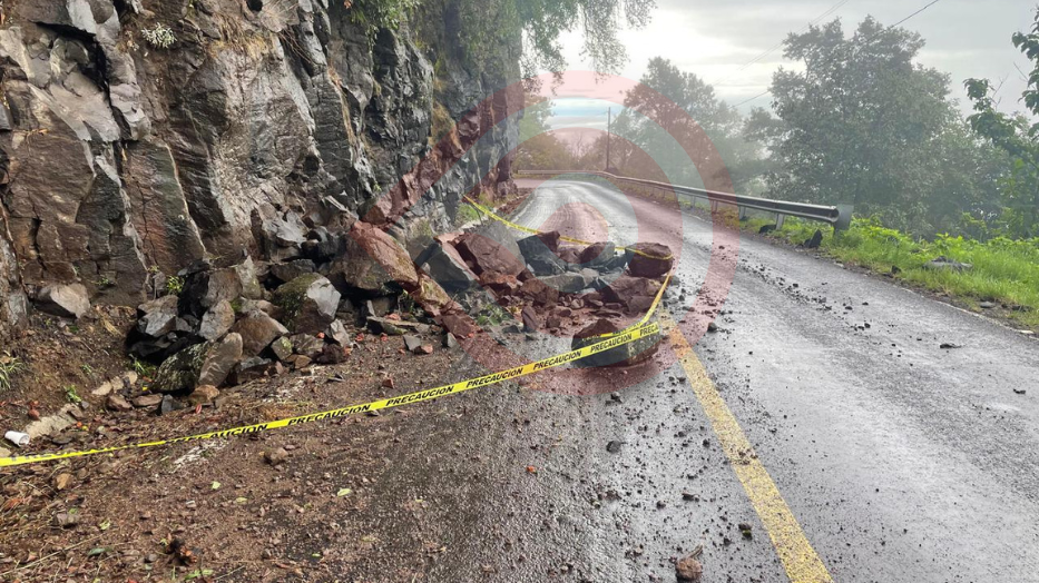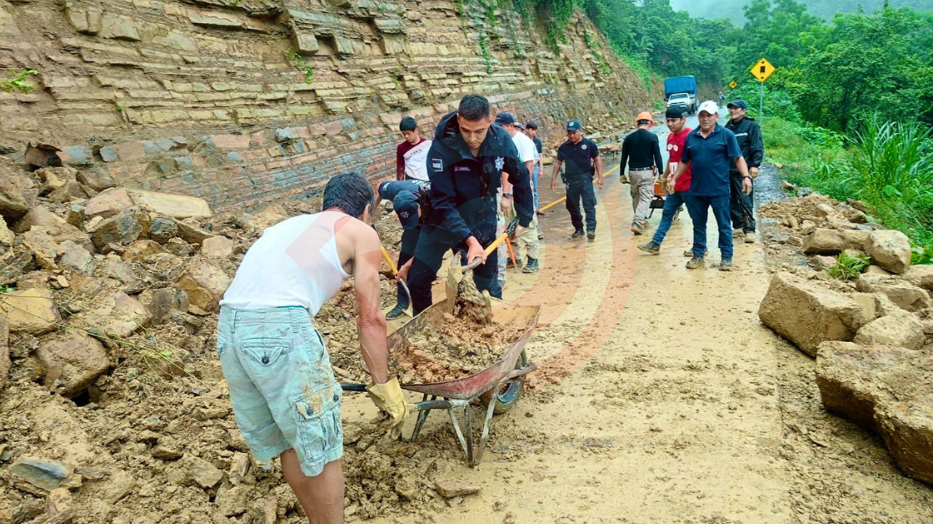 En el municipio de Tlanchinol, se detectó un derrumbe en el camino que conecta a la localidad de Hueyapa, a la altura del kilómetro 5, donde se realiza el retiro de piedras y material de arrastre.