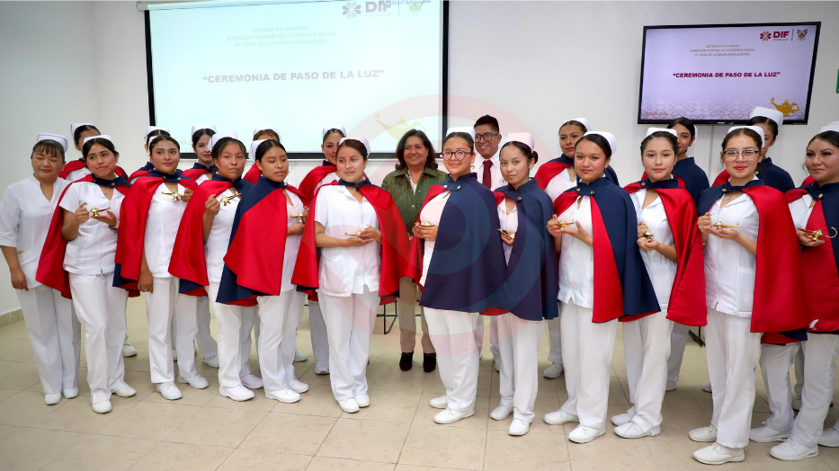 Pachuca de Soto, Hgo.- Con profundo orgullo, la Casa de la Mujer Hidalguense (CMH) del Sistema DIF Hidalgo celebró la tradicional Ceremonia del Paso de la Luz, evento simbólico que marca el salto de 21 estudiantes de la carrera de Técnico en Enfermería General a su etapa como prácticantes comprometidas con el servicio y el cuidado humanizado de la salud.