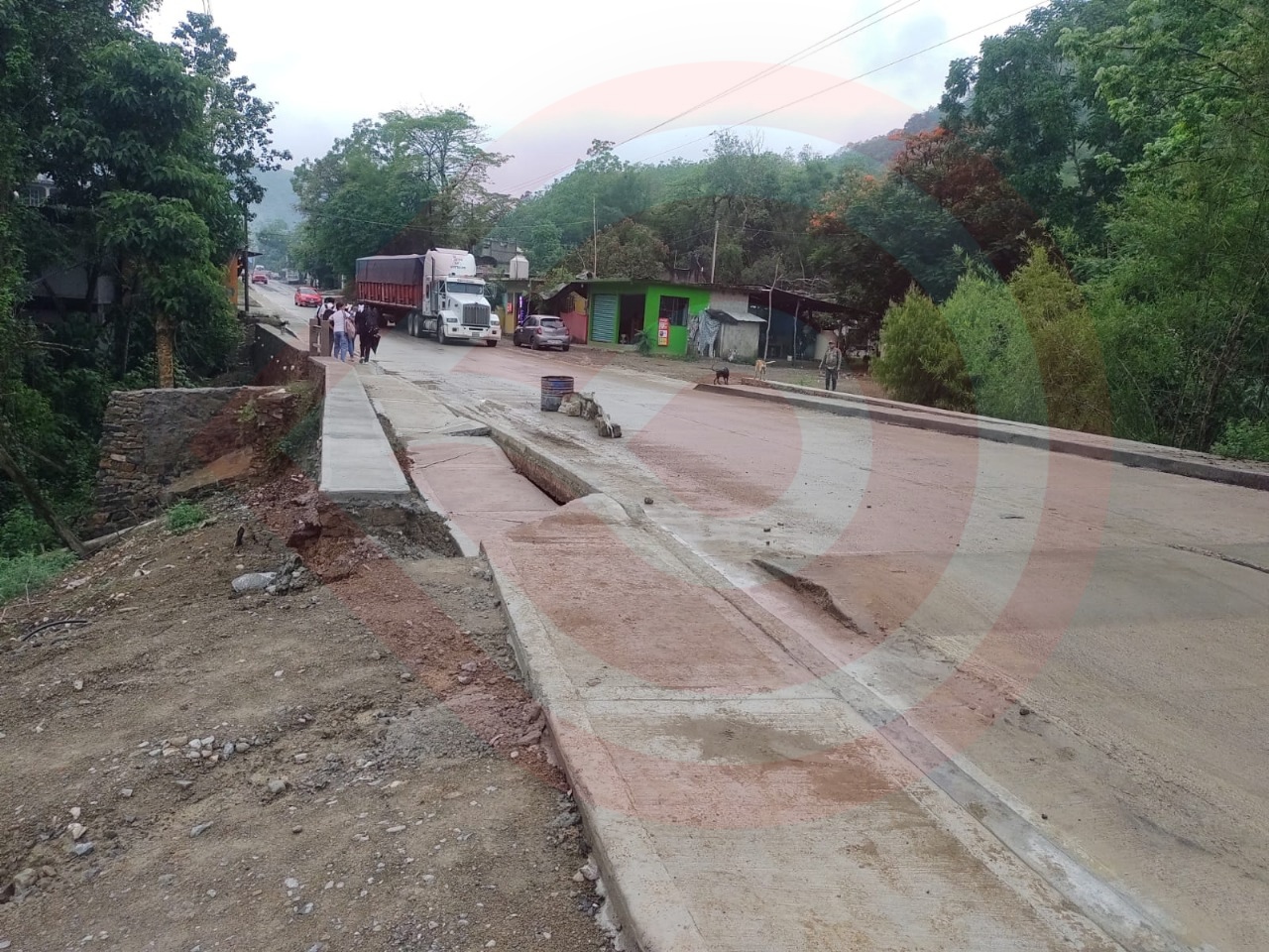 Huejutla, Hgo.- Nuevamente el puente de la comunidad de Tepexititla presenta afectaciones por causa de las lluvias que se han registrado en los últimos días, debido a que el material que se encuentra debajo de la plancha de concreto se desplazó, ocasionando que una de las banquetas se fracturara, generando temor en los vecinos de que pudiera formarse un nuevo socavón.