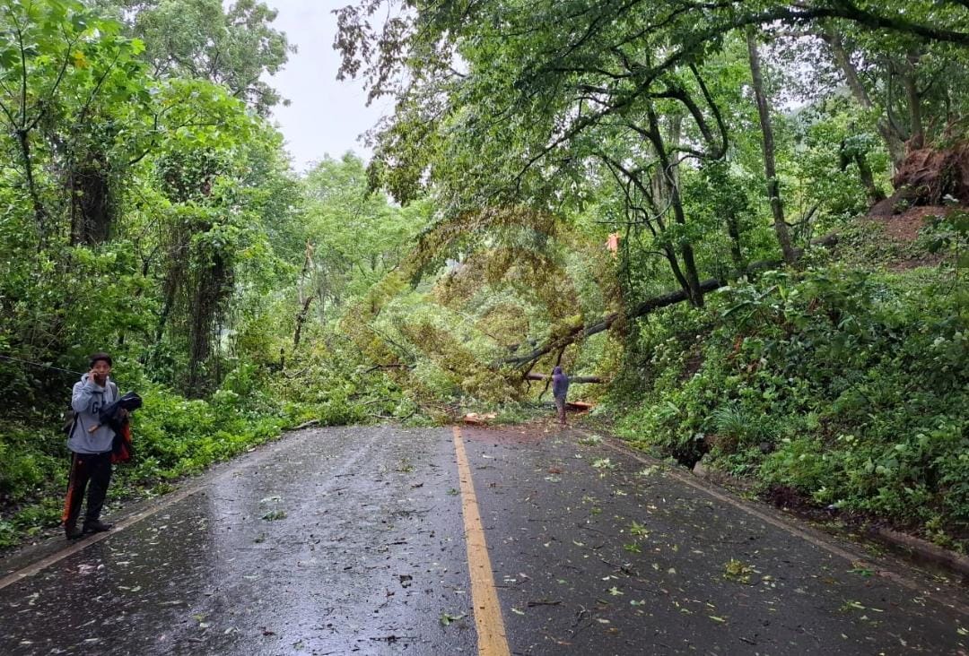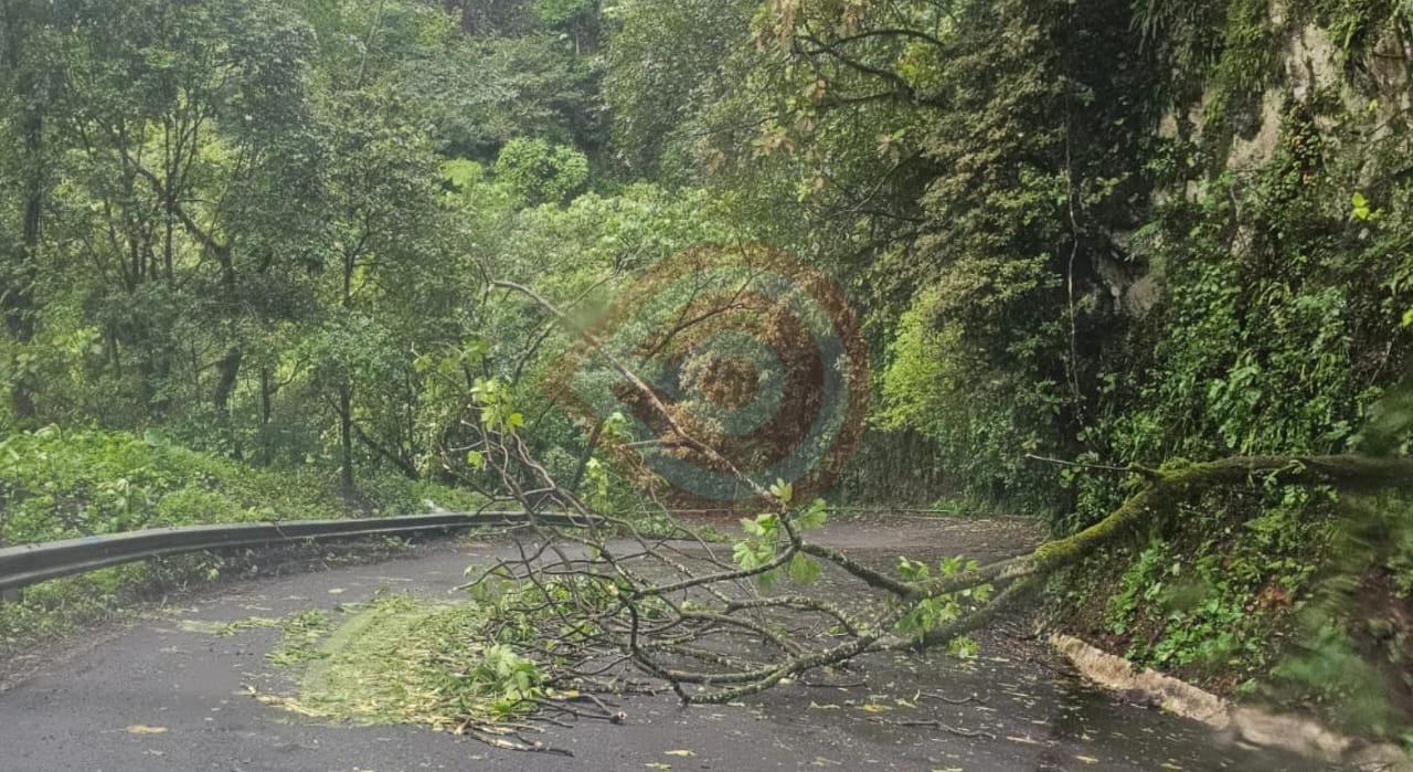 Tlanchinol, Hgo. – Varios árboles que se cayeron sobre la cinta asfáltica en diversos tramos de la vía federal México-Tampico obstruyen el paso a los vehículos motrices en uno o dos carriles, por lo que piden transitar con precaución en la zona serrana.