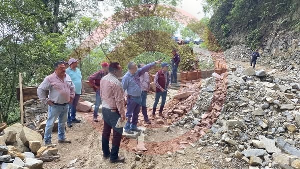 Tlanchinol, Hgo.- A fin de supervisar los trabajos que se realizan en la construcción de un muro de contención en la comunidad de Cuatlimax, el alcalde acudió, acompañado de funcionarios municipales, junto con autoridades de la comunidad, para verificar que se está cumpliendo con las especificaciones del proyecto.