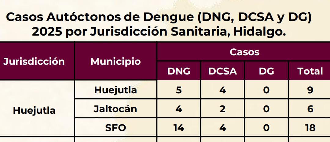 Subraya que, de acuerdo con los resultados que se tienen registrados en la Huasteca, Huejutla avanza ya con 9 casos, Jaltocán con 6 y San Felipe Orizatlán llega a los 18 casos.