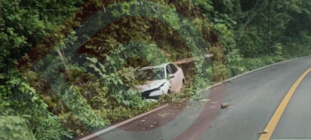 Fue la mañana de este miércoles cuando reportaron este accidente, donde un automóvil Jetta, color blanco, cuyo chófer presuntamente manejaba a exceso de velocidad, en esa curva se salió de la carretera, retachando con un poste de Telmex y terminó derribándolo.