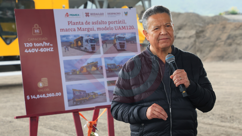 Pachuca de Soto, Hgo.- El titular del Ejecutivo de Hidalgo, Julio Menchaca, recibió de Petróleos Mexicanos (Pemex) una planta de asfalto portátil, resultado de la gestión y coordinación que realizó la Secretaría del Despacho del Gobernador ante esta empresa mexicana, para cumplir con el compromiso de generar mejores condiciones de infraestructura en beneficio de la población hidalguense.