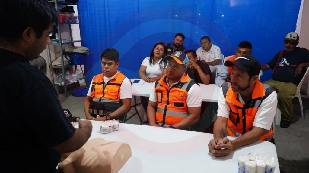 Los instructores Michell Galván, del CEFOP y Carlos Hidalgo, del Cuerpo de Bomberos, impartieron la capacitación que incluyó temas como seguridad del personal, evaluación de la escena y del paciente, maniobra de Heimlich, RCP, atención de picaduras de insectos y mordeduras de animales, tipos de quemaduras por grado, manejo de fracturas y luxaciones, convulsiones, desmayos y control de hemorragias.