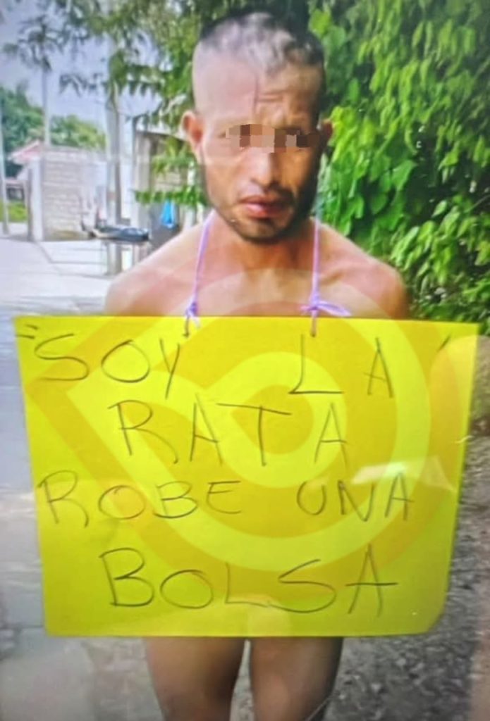 Huejutla, Hgo. – Derivado de la denuncia de una persona que le habían robado una bolsa, un grupo de personas ubicaron el presunto ladrón para desnudarlo y colocarle una cartulina con una leyenda, en presunto delincuente tuvo que caminar en esas condiciones hasta ser rescatado por la policía municipal.