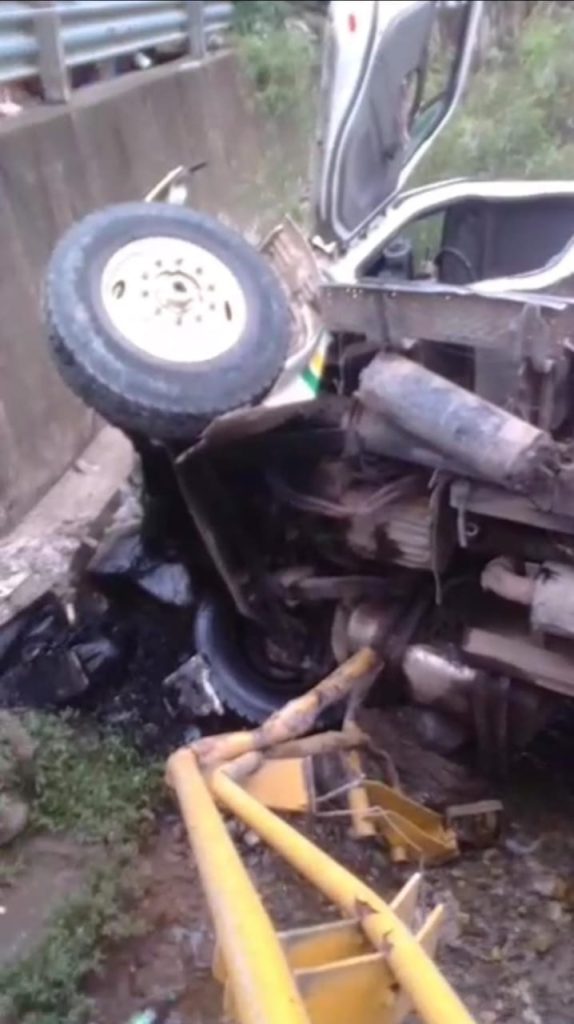 El camión de Jarritos al circular por ese lugar presentó esa falla mecánica y salió disparado del puente, destrozando parte del barandal y dejando cuantiosos daños materiales en el vehículo; en el acto atropelló a dos transeúntes y el chófer también salió herido.