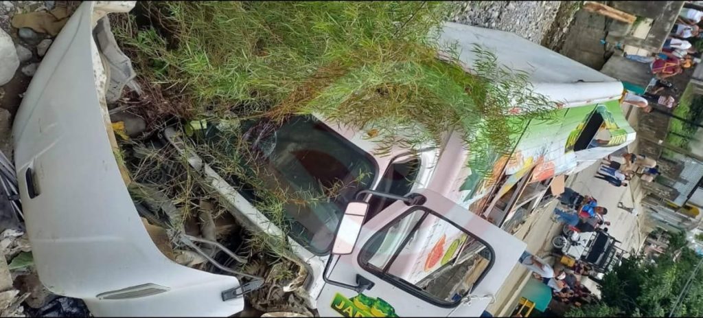 San Felipe Orizatlán, Hgo. – Un camión refresquero, de la empresa Jarritos, volcó sobre un puente y cayó al río en la comunidad de Ahuatitla, de este municipio; el pesado vehículo presuntamente se quedó sin frenos desde una calle con pendiente, cuyo operador al perder el control se precipitó al afluente.