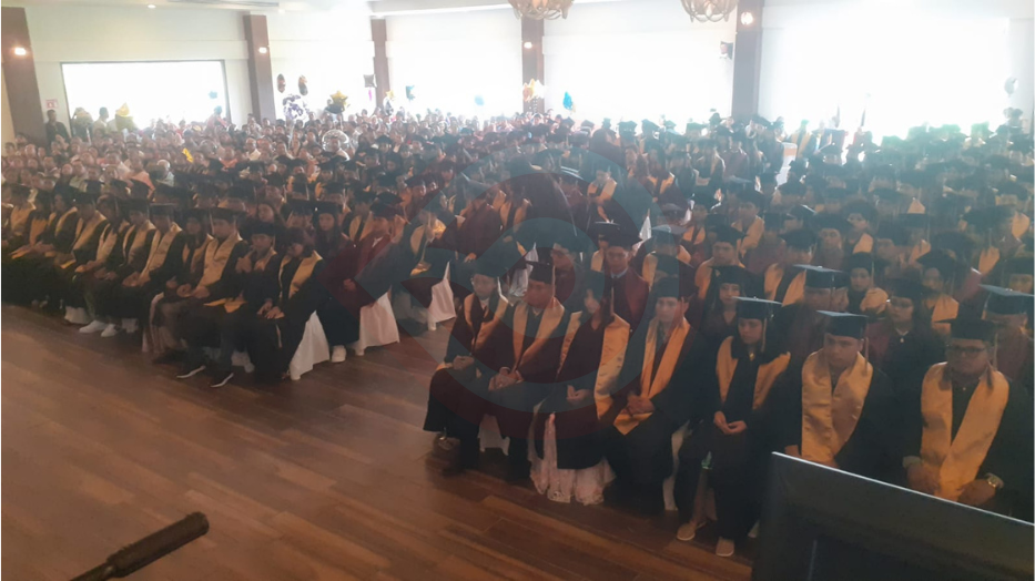 La celebración inició alrededor de las 11:00 horas, en donde los alumnos y alumnas ataviados todos con su toga y birrete en color negro y una banda dorada; estuvieron acompañados de padres, tutores y sus respectivos padrinos.