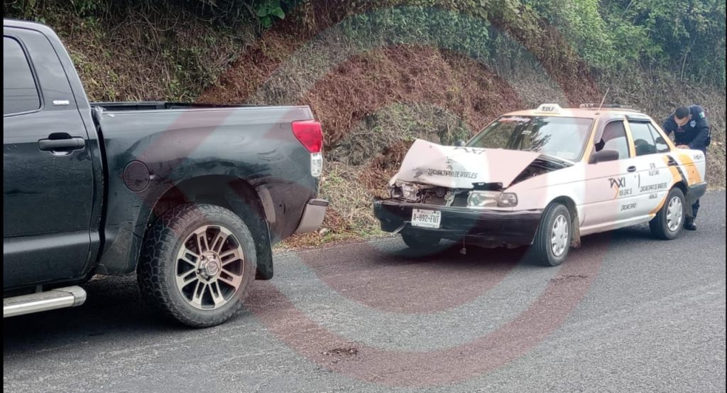 Molango, Hgo. – Ante el exceso de velocidad y no guardar su distancia de circulación, un taxi se impactó por alcance contra una camioneta, sobre la vía federal México-Tampico, a la altura de la recta de este municipio; policías municipales hicieron presencia para intervenir en los hechos.