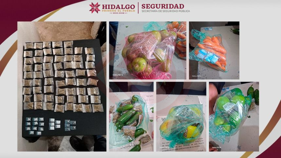 Tras arribar al lugar, las autoridades se entrevistaron con la mujer señalada, a quien le fueron detectados diversos envoltorios los cuales contenían 612 dosis de presunta marihuana, 11 dosis de droga sintética “cristal”, cinco dosis de probable cocaína y cinco más de droga tipo “crack”, ocultas en diversas bolsas de verduras.