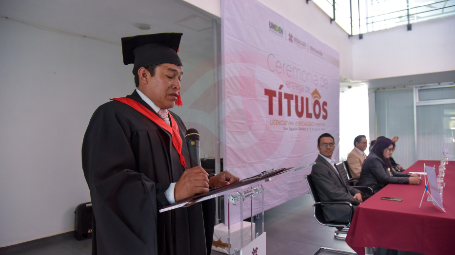 Al realizar la entrega de títulos, el encargado de la dirección General de Educación Superior, Julio César Sánchez Farías, enfatizó la importancia de la UNIDEH en la ampliación de oportunidades educativas en Hidalgo, al ofrecer educación superior en modalidad digital, que abarca los 84 municipios del estado, garantizando así el acceso a conocimientos de calidad para todos los sectores de la población.