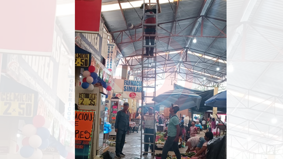 Administración de Mercados y Alumbrado Público cambian lámparas en la Plaza del Maíz