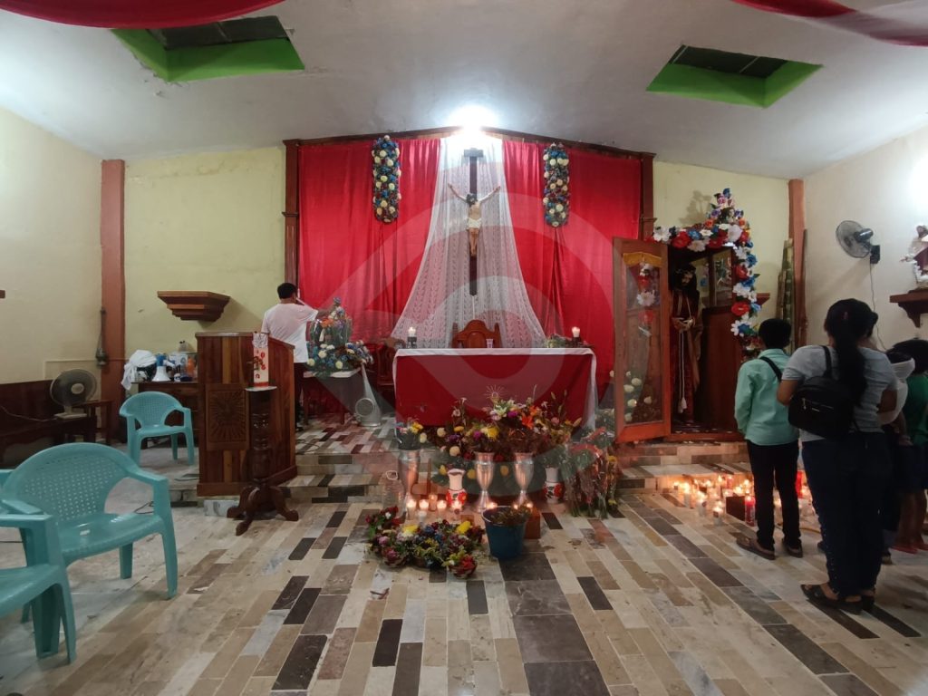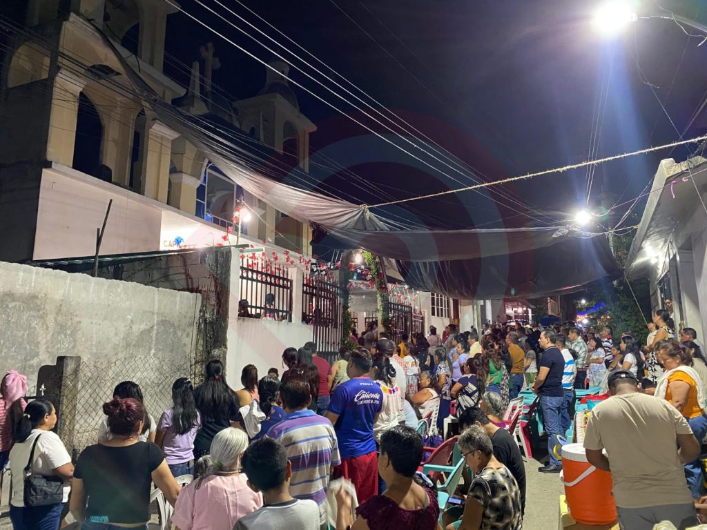 En punto de las 9:00 pm dió inicio la sagrada eucaristía, en un ambiente de alegría de los feligreses que abarrotaron el interior, y el atrio de la capilla, así como una parte de la calle principal Emiliano Zapata la cual permaneció cerrada para la circulación de automóviles en un tramo comprendió de 400 metros aproximadamente, dónde se colocaron sillas para la concurrencia, así como para los puestos que ofrecieron principalmente alimentos.