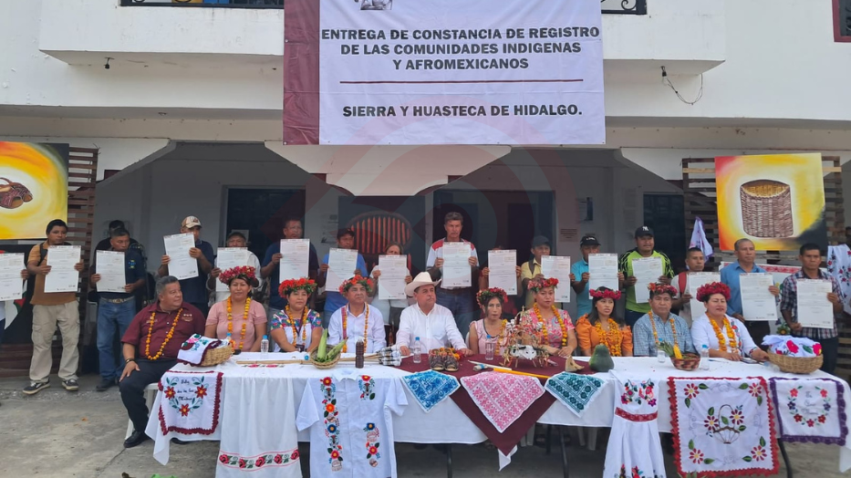 Entregan constancias de registro nacional de pueblos indígenas y Afromexicanas en 22 comunidades de Jaltocán