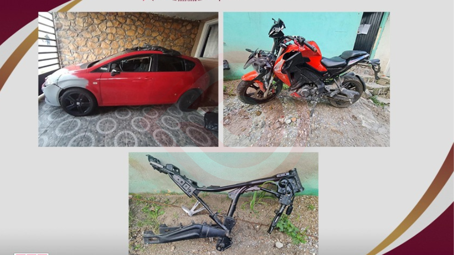 En tanto, en el tercer predio, ubicado en la colonia Lomas de la Cantera, fueron intervenidas dos hombres identificados como Z. E. C. C. y J. H.A., a quienes les confiscaron 303 dosis de presunta marihuana, 13 dosis de sustancia granulada tipo “cristal” y 26 dosis de posible cocaína, así como una motocicleta y un marco metálico de motocicleta, ambos con reporte de robo vigente.