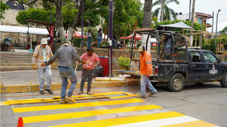 Huejutla, Hgo.- Por instrucciones del presidente municipal Lic. José Alfredo San Román Duval, personal del área de Balizamiento del gobierno municipal de Huejutla realiza trabajos de pintado de señalética en calles de la zona Centro de la ciudad, con el objetivo de delimitar espacios, mejorar la seguridad vial y promover una movilidad más ordenada para peatones y conductores.