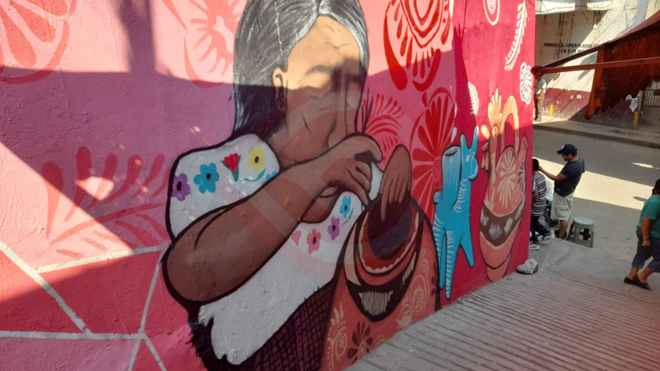 Indagando al respecto, comerciantes quienes se ubican en la avenida Constituyentes, a donde converge el pasadizo que proviene de la carretera federal, expresaron que desconocen la identidad de quienes están haciendo la pintura, que por sus elementos -dijeron-, consideramos propia y hermosa, ya que refleja la más emblemática artesanía local.