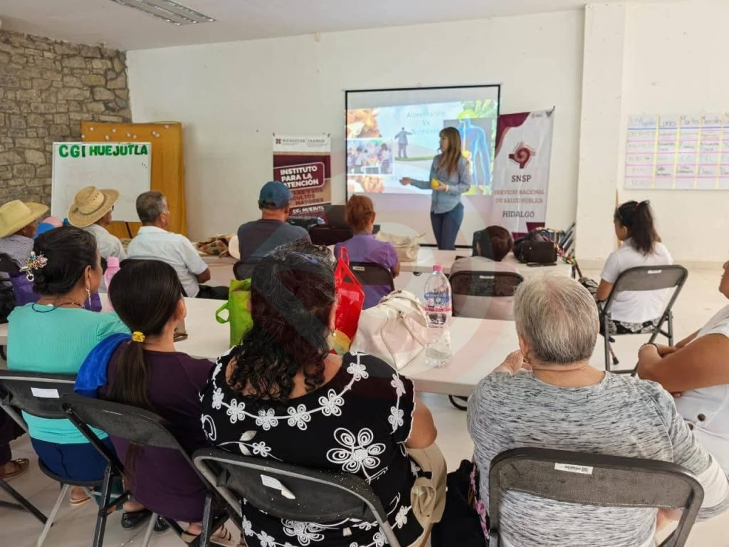 Huejutla, Hidalgo. – Cómo parte de las acciones enfocadas en fortalecer los hábitos saludables y mejorar la calidad de vida de los adultos mayores, el Instituto para la Atención de las y los Adultos Mayores del Estado de Hidalgo, en coordinación con el Servicio Nacional de Salud Pública (SNSP), impartieron la plática “Alimentación correcta para las personas mayores y las claves para una vida sana”.