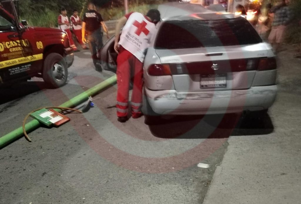 Huejutla, Hgo. – Conductor de un automóvil chocó y derribó un poste metálico de alumbrado público, sobre la vía federal México-Tampico, en las inmediaciones de la comunidad de Tecorral de esta ciudad; servicios de emergencias y policías acudieron al lugar.