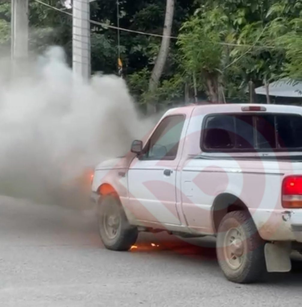 El siniestro de registró a un lado del Banco azteca, de la cabecera municipal, en donde a una camioneta Ford le empezó salir humo en el cofre y en segundos ardió todo el vehículo, alarmando a los automovilistas por las gigantescas llamas. El incendio sólo dejó daños materiales.