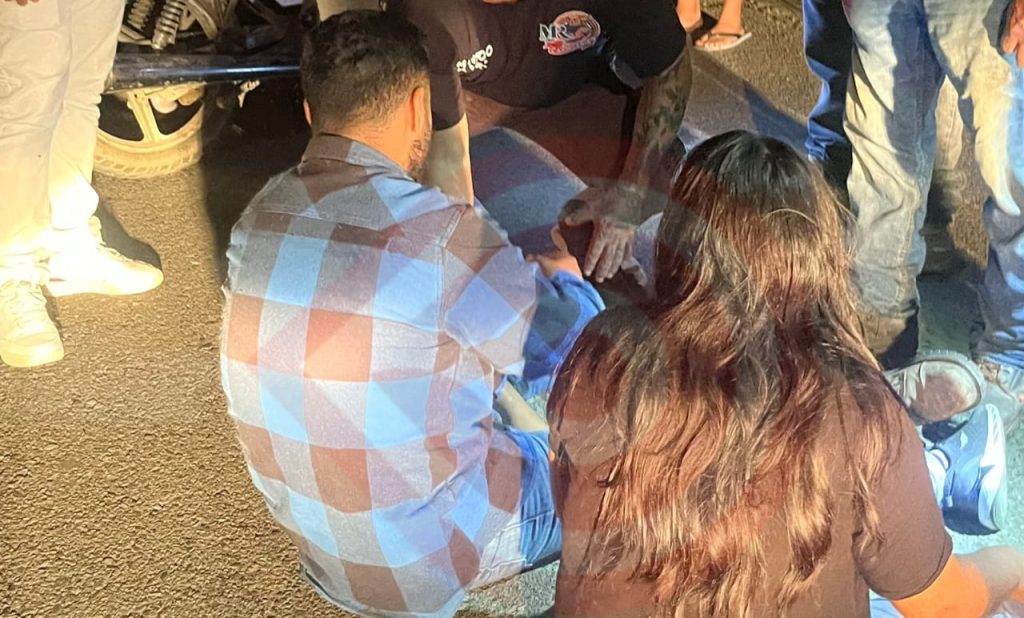 Huejutla, Hgo. – Dos motociclistas sufrieron diversas lesiones en derrapamiento y caída de la unidad, familiares acudieron al lugar para brindar los primeros auxilios a las personas que resultaron lesionadas.