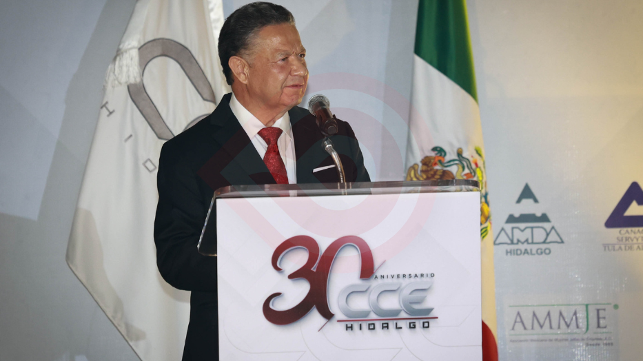 Pachuca de Soto, Hgo.- Con el compromiso de trabajar en coordinación con todos los sectores, el gobernador Julio Menchaca Salazar acompañó al Consejo Coordinador Empresarial (CCE) de Hidalgo en la conmemoración de su 30 aniversario, momento en el que reafirmó su respaldo a quienes, con su trabajo, aportan al crecimiento de la economía y bienestar del estado.